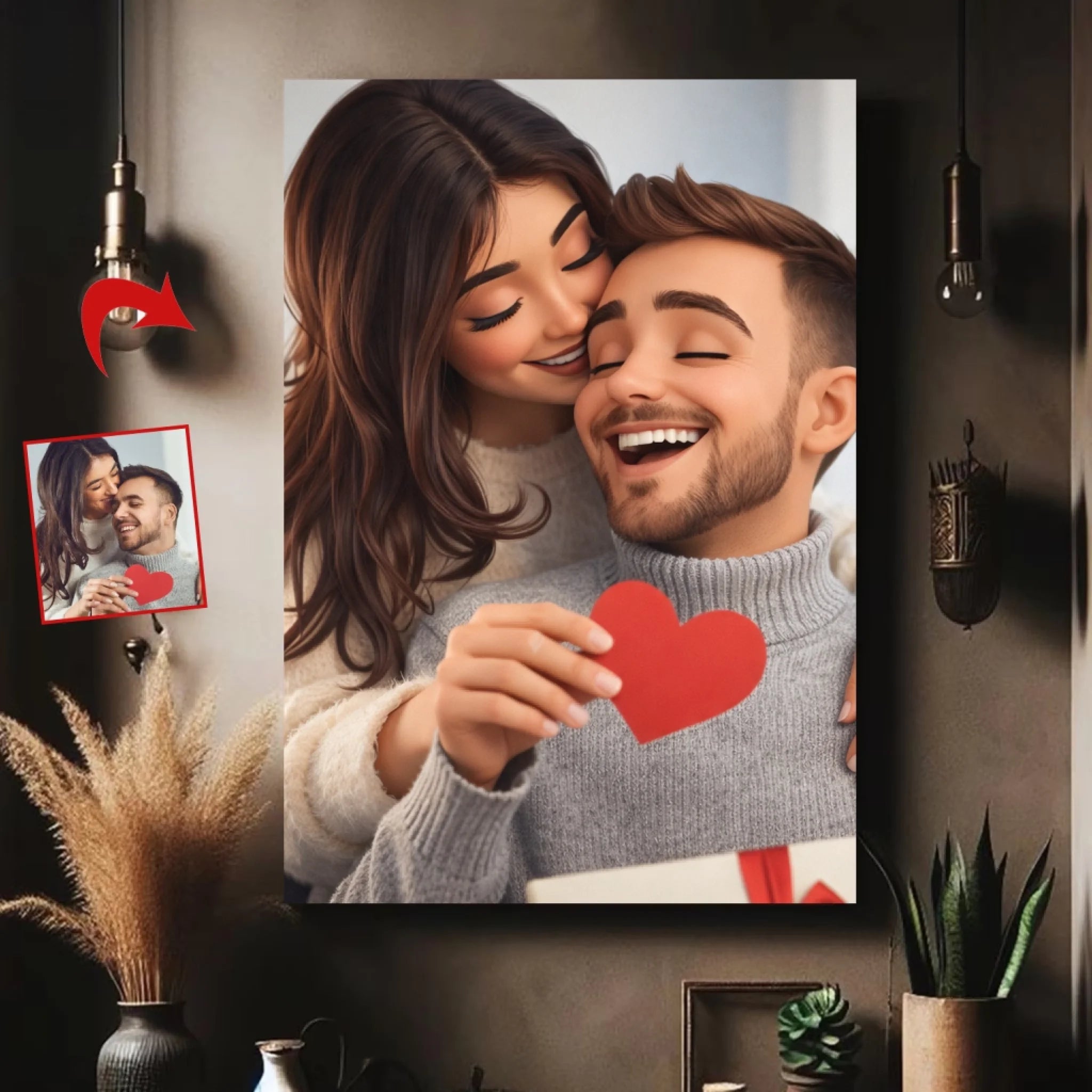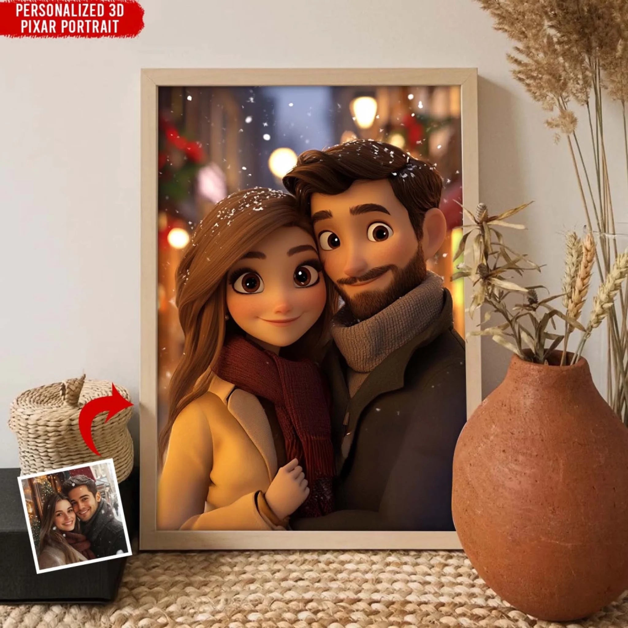 From your real photo to a beautifully crafted 3D cartoon.A personalized keepsake that tells your love story.