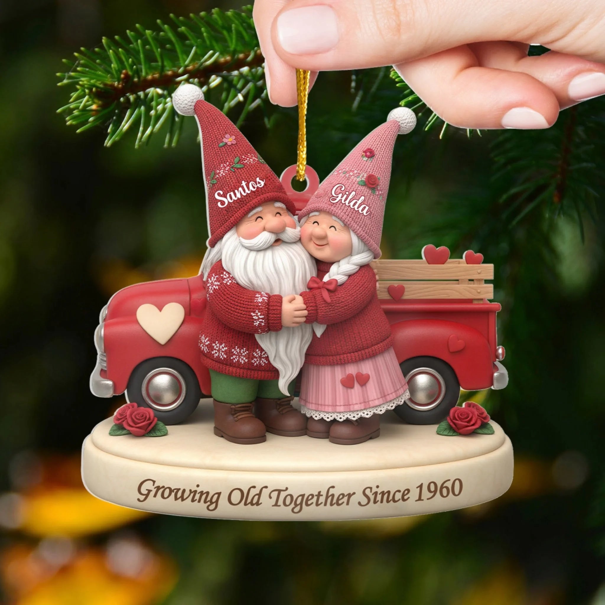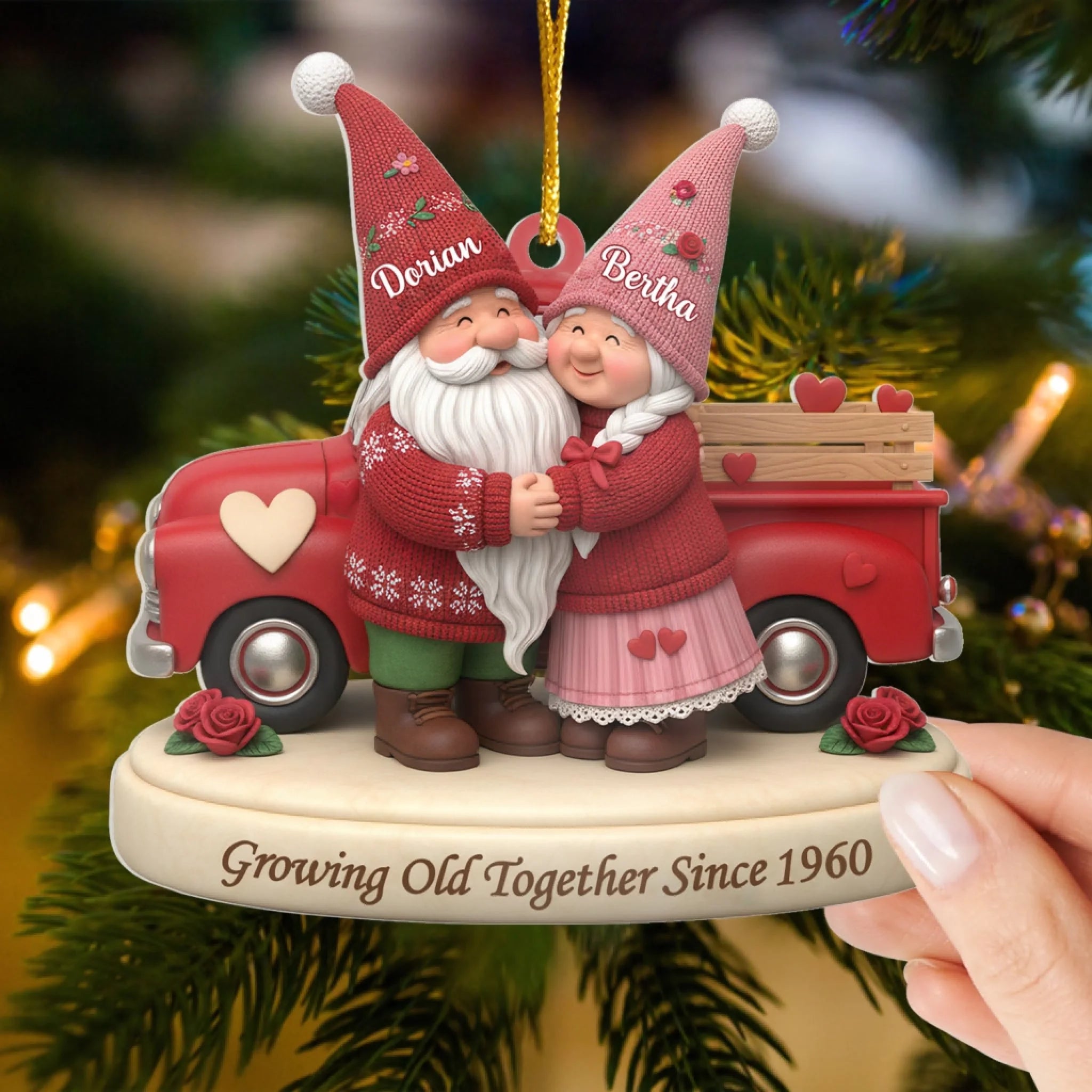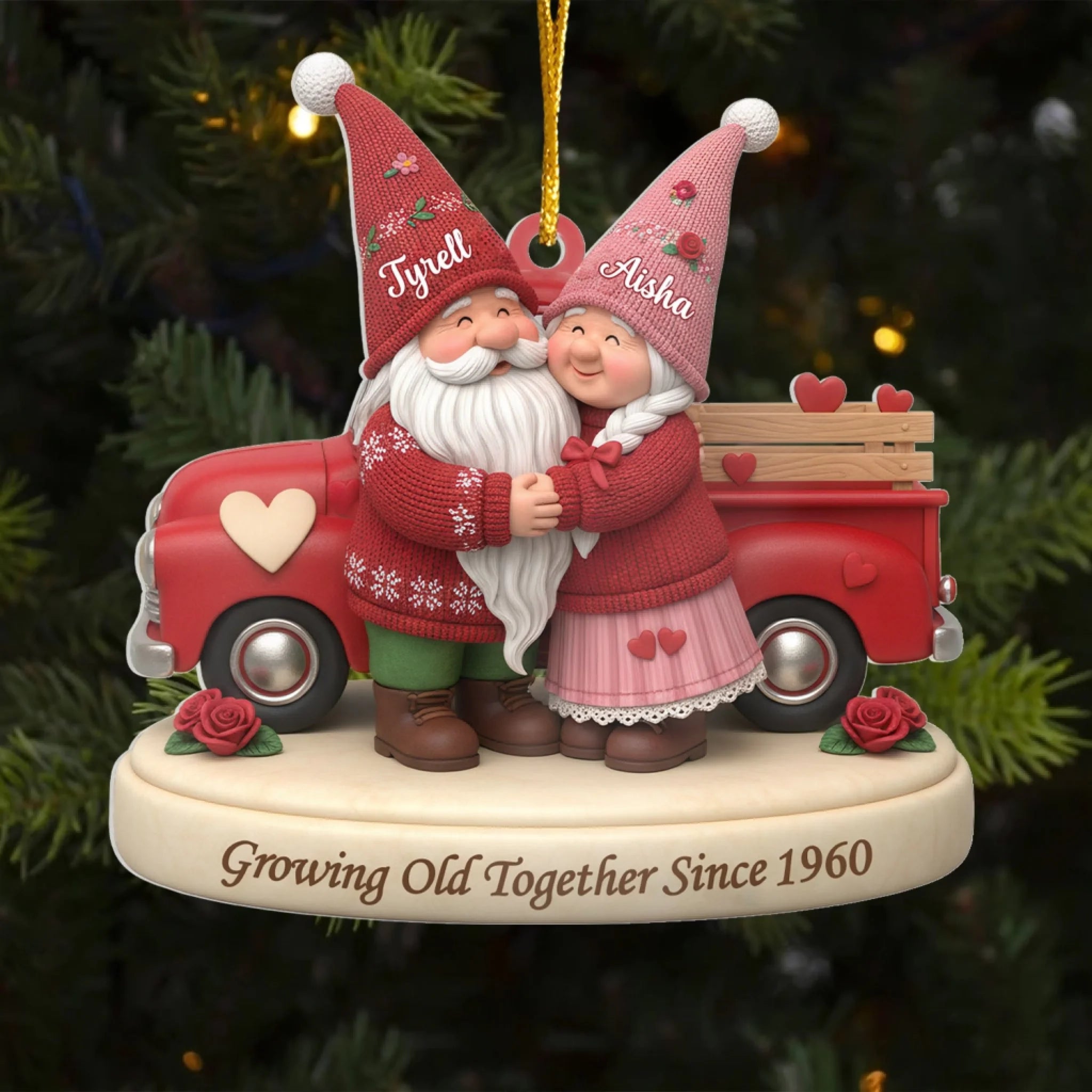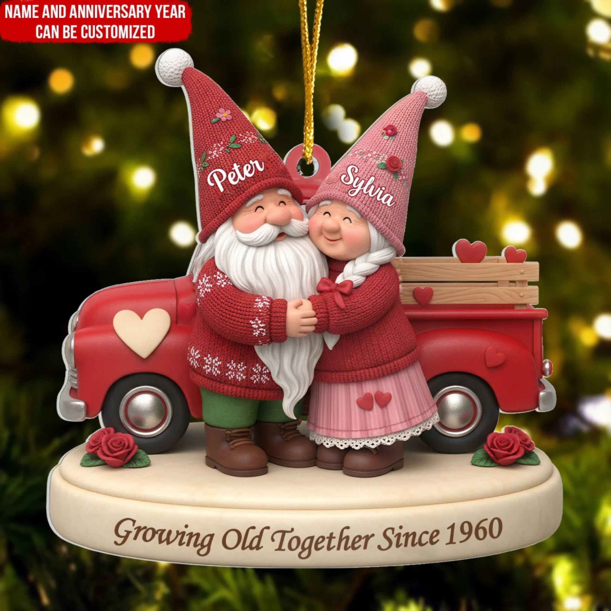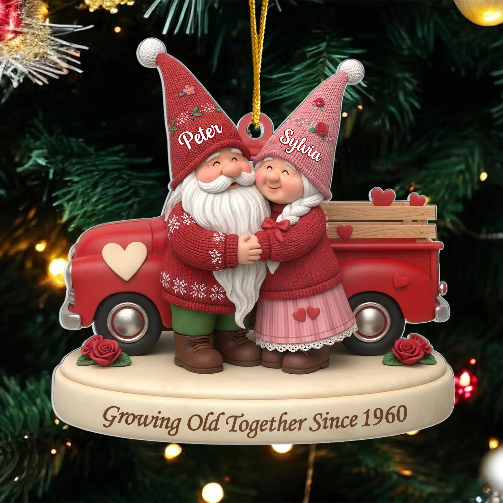 Gnome Couple Is Growing Old Together – Personalized Acrylic Ornament, Gift for Couples, Romantic Keepsake Ornament